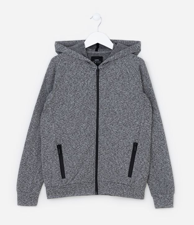 Jaqueta Infantil com Capuz e Bolsos - Tam 5 a 14 Anos Cinza