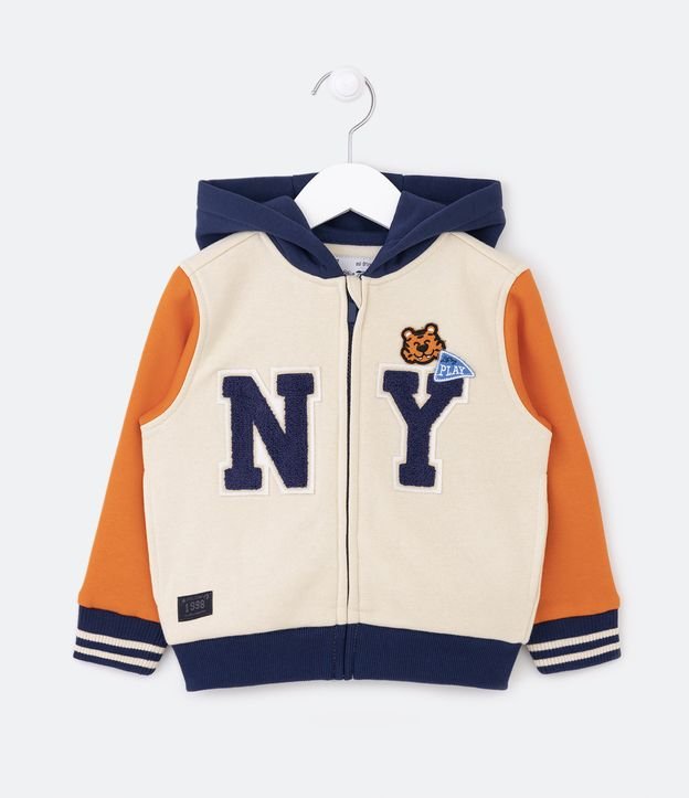 Jaqueta Infantil com Capuz e Bordado em Lettering College NY - Tam 1 a 5 Anos