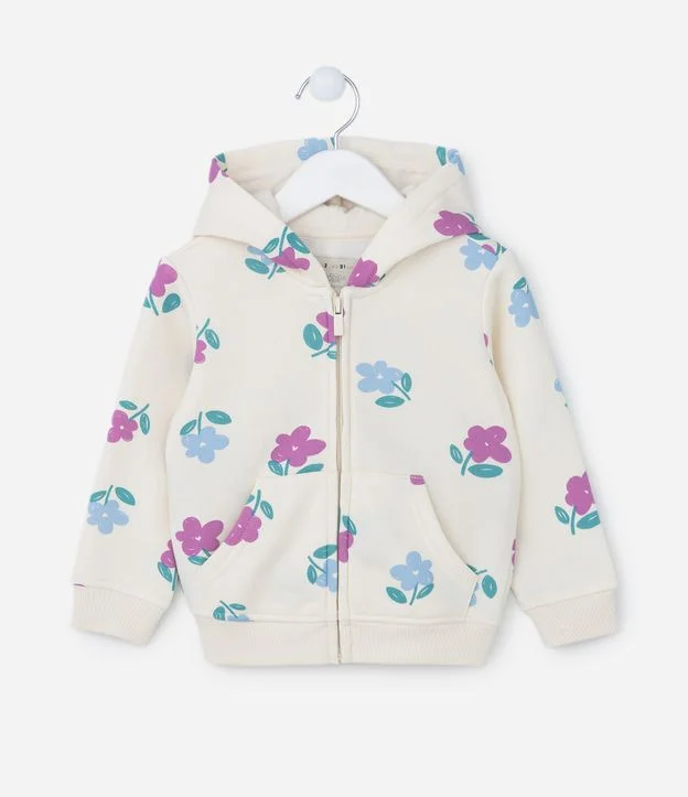 Jaqueta Infantil com Capuz e Estampa Florzinhas - Tam 1 a 5 Anos Off White