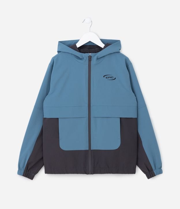 Jaqueta Infantil com Capuz e Recortes - Tam 5 a 14 Anos Azul/Preto