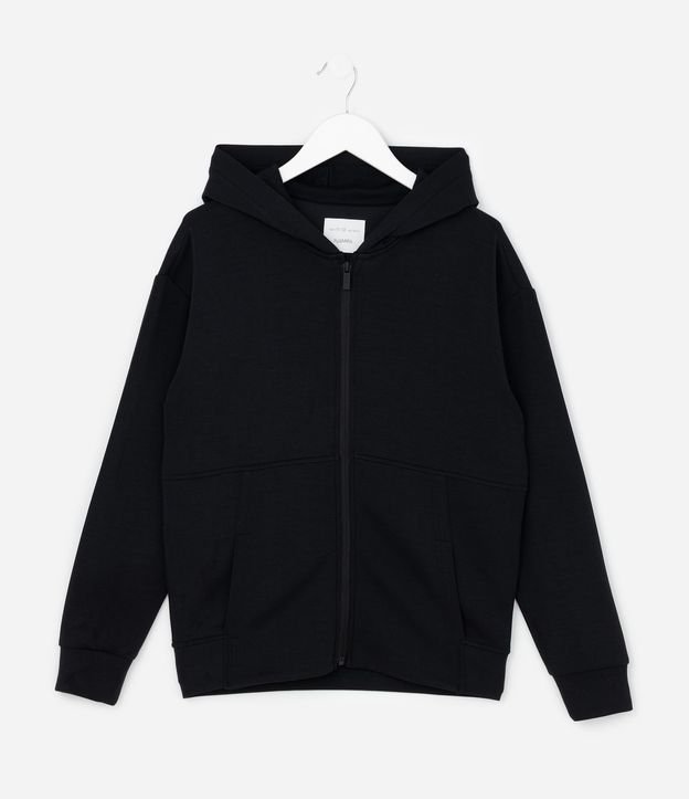Jaqueta Infantil com Capuz e Zíper - Tam 5 A 14 Anos Preto