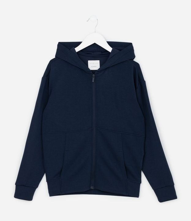 Jaqueta Infantil com Capuz e Zíper - Tam 5 A 14 Anos Azul Marinho