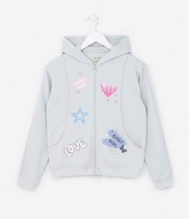 Jaqueta Infantil com Viés Contrastante e Estampa Doodles - Tam 5 a 14 Anos