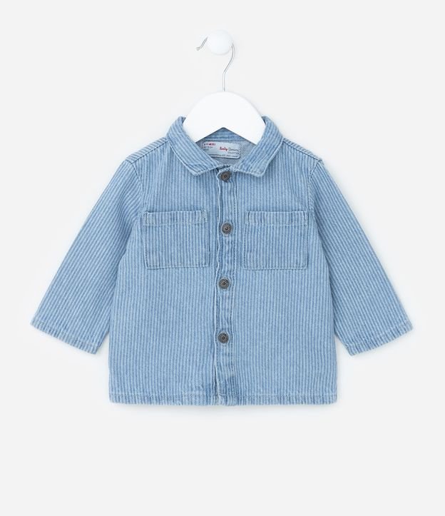 Jaqueta Infantil em Jeans com Estampa Listrada - Tam 0 a 18 meses