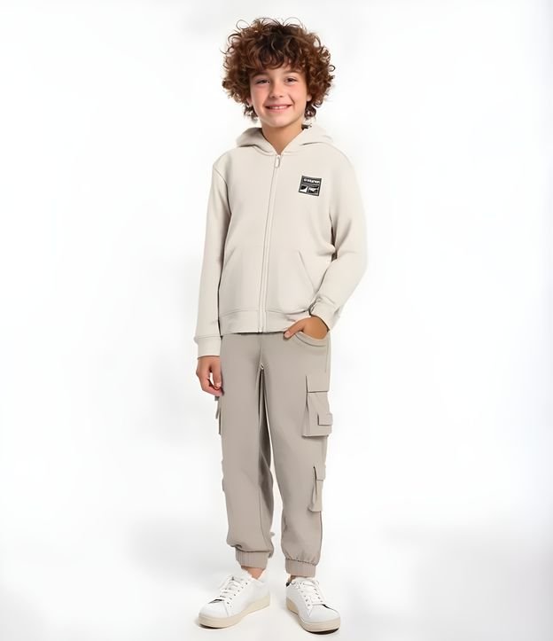 Jaqueta Infantil em Malha Dupla com Capuz - Tam 5 a 14 Anos Bege
