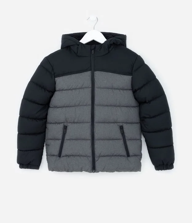 Jaqueta Infantil em Microfibra com Recortes - Tam 5 a 14 Anos Preto/Cinza