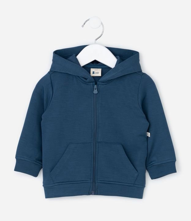 Jaqueta Infantil em Modal com Capuz – Tam 0 a 24 Meses Azul