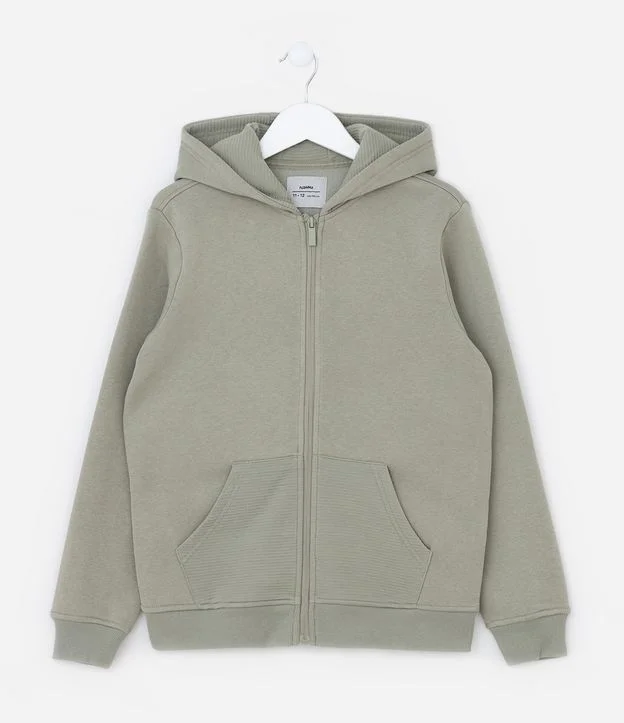 Jaqueta Infantil em Moletom com Capuz e Bolsos Canguru - Tam 5 a 14 Anos Verde