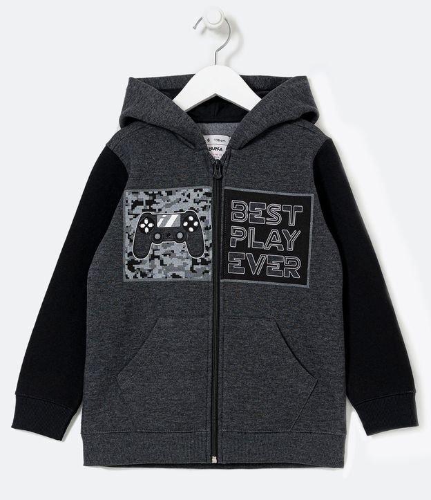 Jaqueta Infantil em Moletom com Capuz Estampa Game - Tam 5 a 14 anos