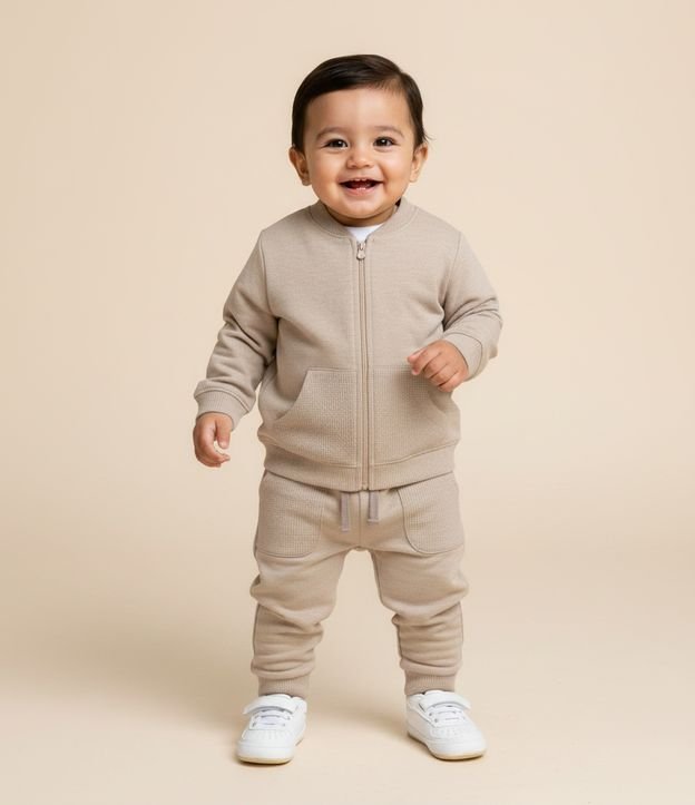 • Jaqueta Infantil em Moletom Waffle com Zíper – Tam 0 a 18 Meses Bege 1