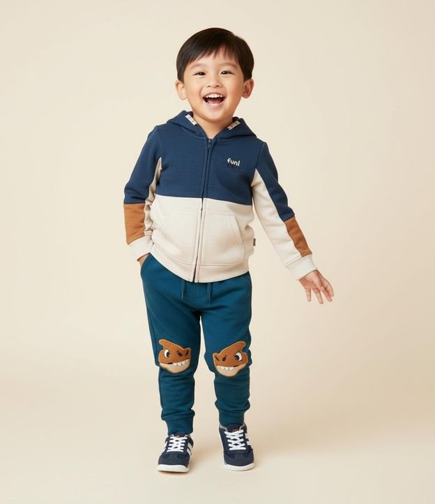 Jaqueta Infantil em Piquet com Recortes - Tam 1 a 6 Anos Azul/Bege
