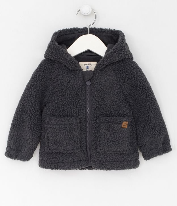 Jaqueta Infantil em Sherpa com Capuz - Tam 3 a 18 meses