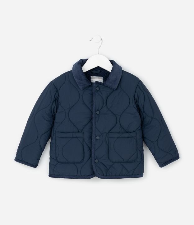 Jaqueta Infantil Matelassada com Gola em Veludo – Tam 1 a 6 Anos Azul Marinho