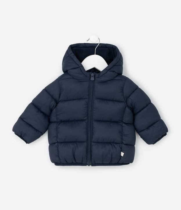 Jaqueta Infantil Puffer com Capuz – Tam 3 a 18 Meses Azul Marinho