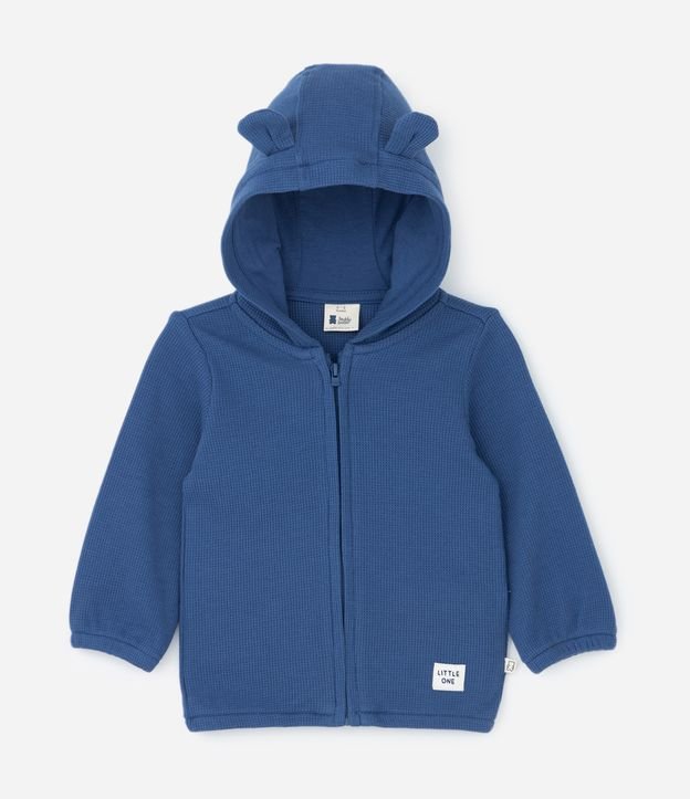 Jaqueta Infantil Texturizada com Capuz e Orelhinhas - Tam 0 a 18 meses Azul