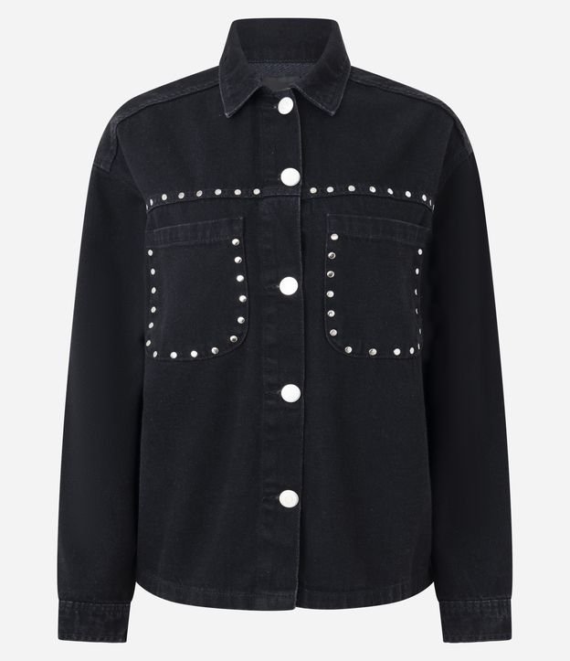 Jaqueta Overshirt em Jeans com Tachas Metálicas Preto