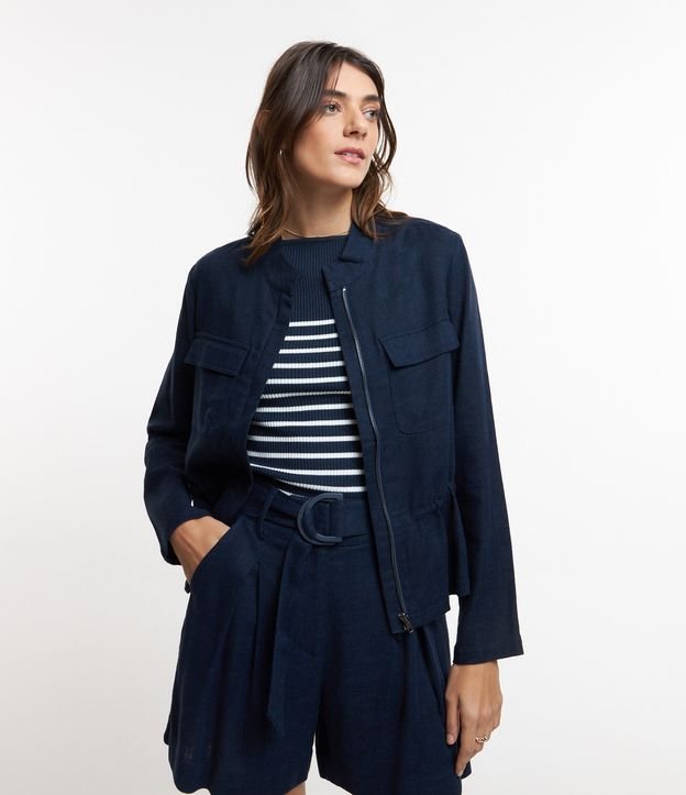 Jaqueta Parka em Viscolinho com Gola Alta e Bolsos de Lapela