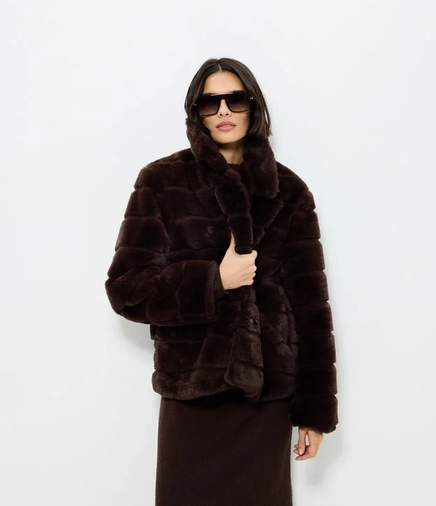 Jaqueta Pesada Curta em Pelo Artificial com Gomos Marrom