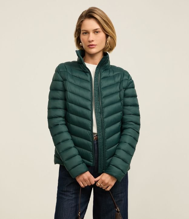 Jaqueta Puffer Ultra Leve em Poliamida com Saquinho de Guardar Verde