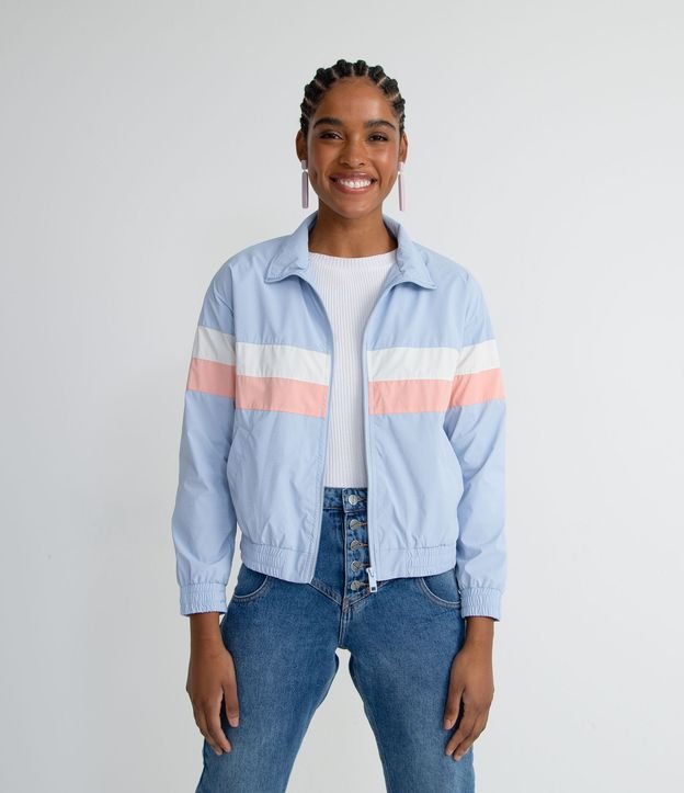 Jaqueta Quebra-Vento com Zíper Frontal Bloco De Cor Tricolor