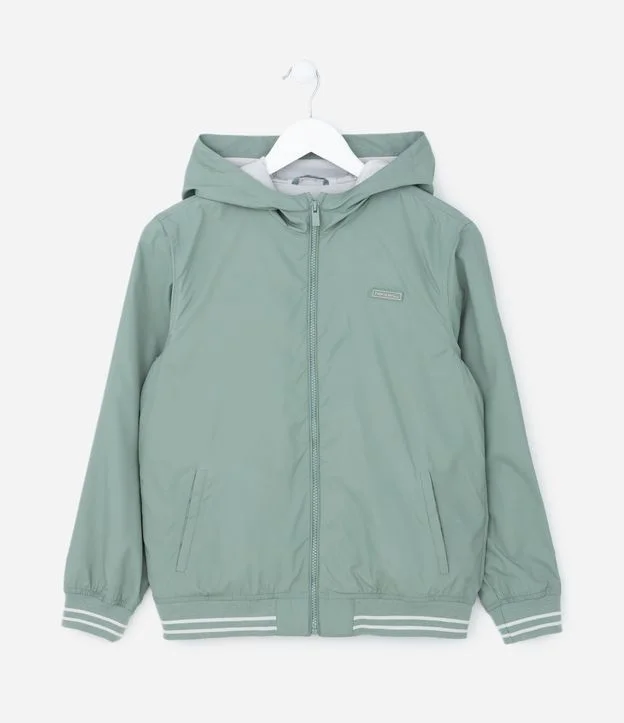 Jaqueta Quebra-Vento Infantil com Capuz - Tam 5 a 14 Anos Verde Claro