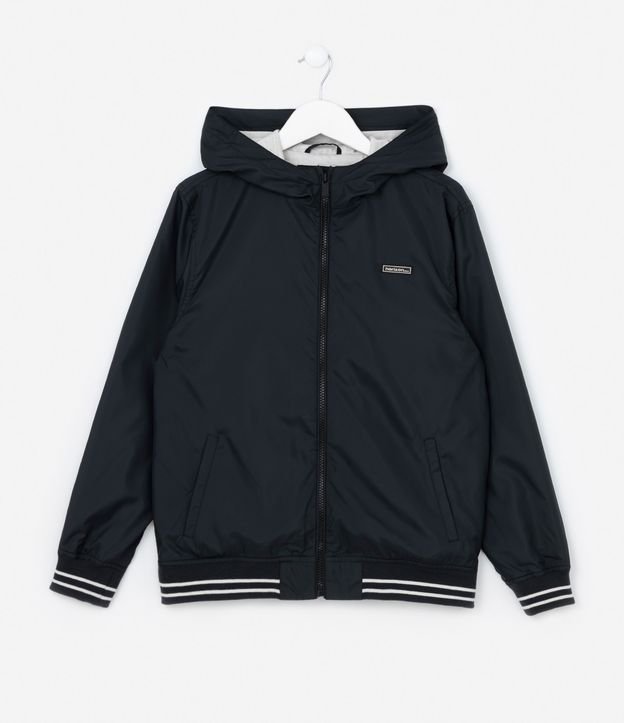 Jaqueta Quebra-Vento Infantil com Capuz - Tam 5 a 14 Anos Preto