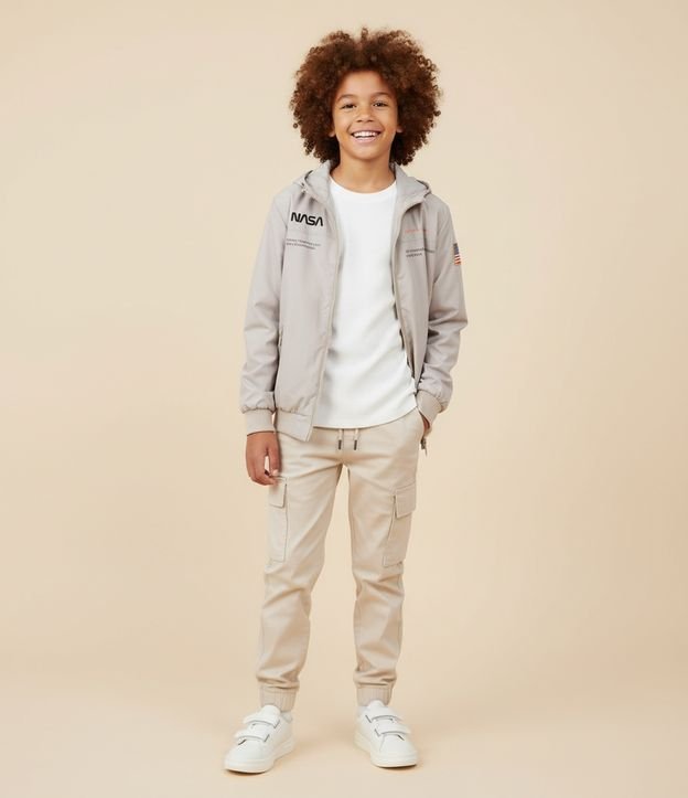 Jaqueta Quebra Vento Infantil com Estampa Nasa - Tam 5 a 14 Anos Bege