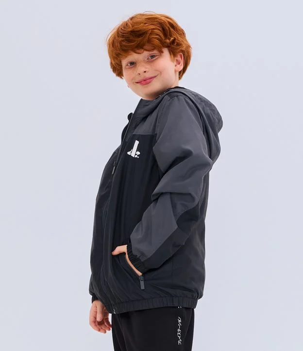 Jaqueta Quebra Vento Infantil Estampa PlayStation - Tam 5 a 14 Anos Cinza/Preto