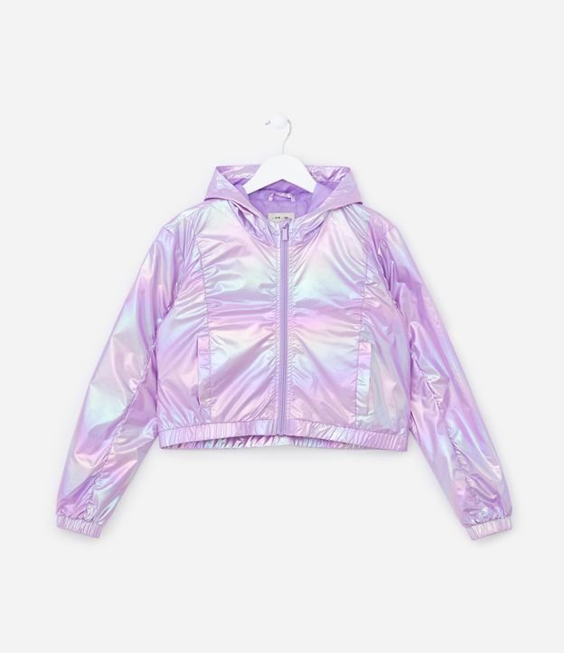 Jaqueta Quebra Vento Infantil Holográfica - Tam 5 a 14 Anos Lilás
