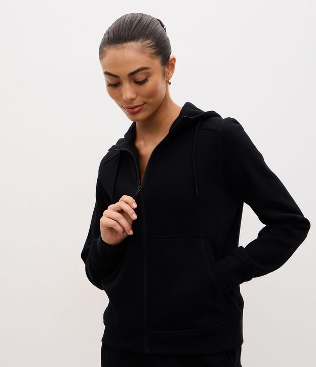 Jaqueta Regular Esportiva em Moletom com Capuz Preto