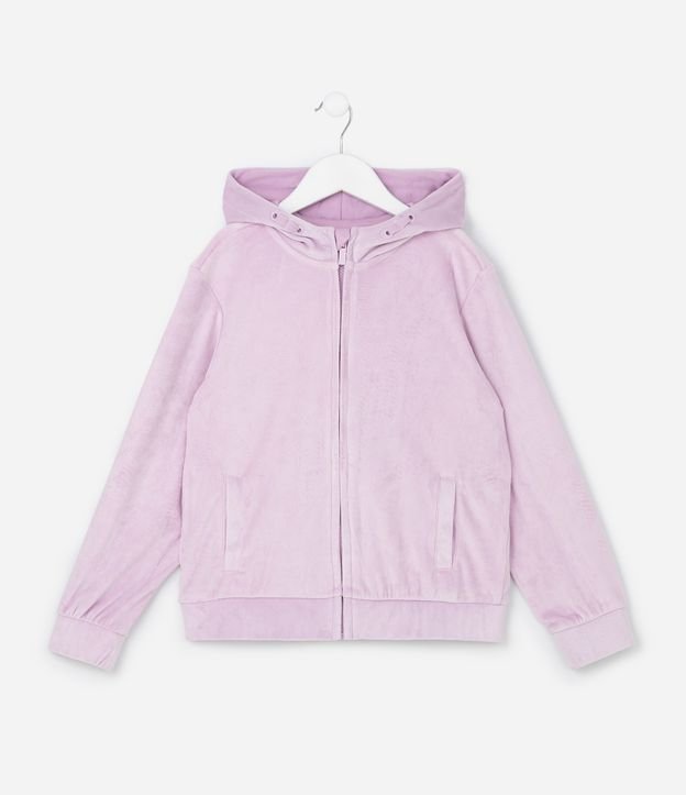 Jaqueta Regular Infantil em Plush com Capuz e Bolso Canguru - Tam 5 a 14 Anos Roxo