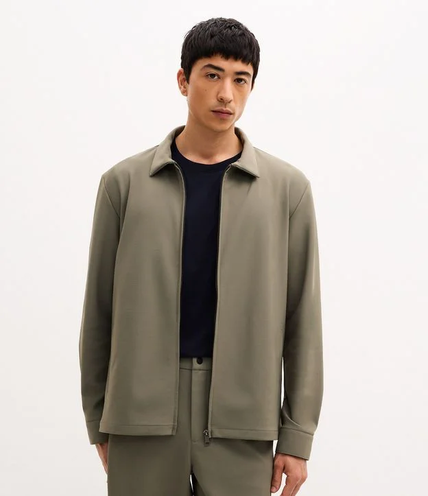 Jaqueta Tecnológica Texturizada com Fechamento em Zíper Verde