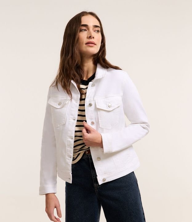 Jaqueta Trucker em Sarja com Elastano e Bolsos