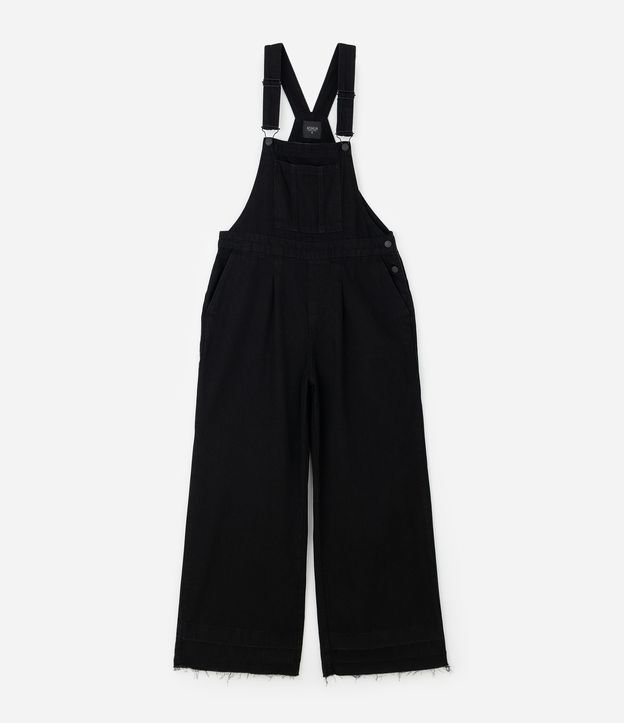 Jardineira em Jeans com Barra Desfiada Curve & Plus Size Preto