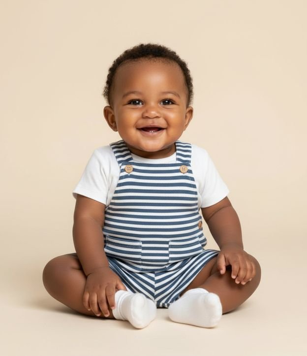 Jardineira Infantil com Estampa de Listras e Texturizada - Tam 0 a 18 Meses