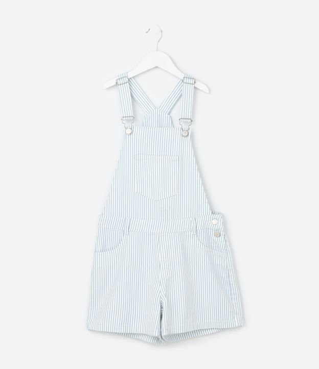 Jardineira Infantil em Jeans com Estampa de Listras e Bolso - Tam 5 a 14 Anos Branco/Azul