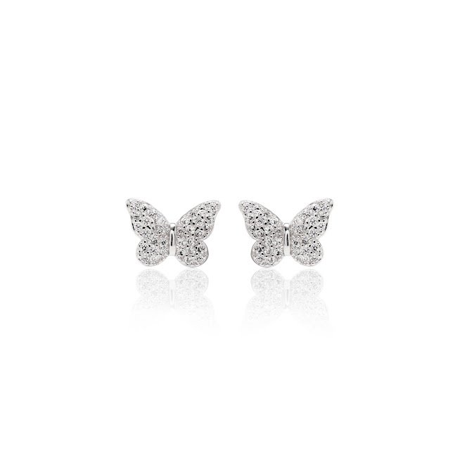 Joia - Brinco Borboleta Cravejada com Cristais - Prata 925 e Banho em Ródio Branco