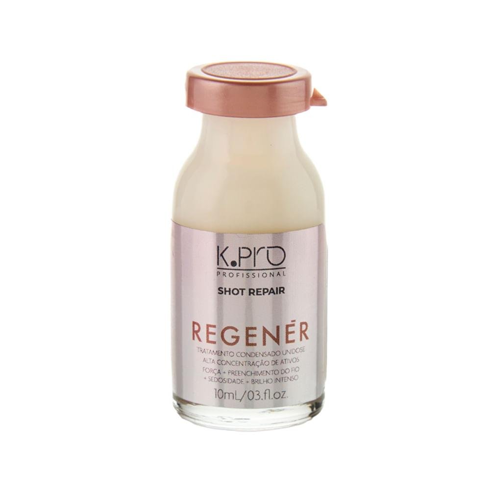 Tratamento Cosmético Condensado para aplicação única e resultado imediato em todos os tipos de cabelos, principalmente os danificados, ressecados e com processos químicos. REGENÉR SHOT REPAIR possui alta concentralçao do exclusivo K.A.P. Complex: Proteínas de alta tecnologia, aliadas aos lipidios e nutrientes essenciais para promover resultados rápidos. Cabelos tratados, leves, sedosos e com brilho intenso