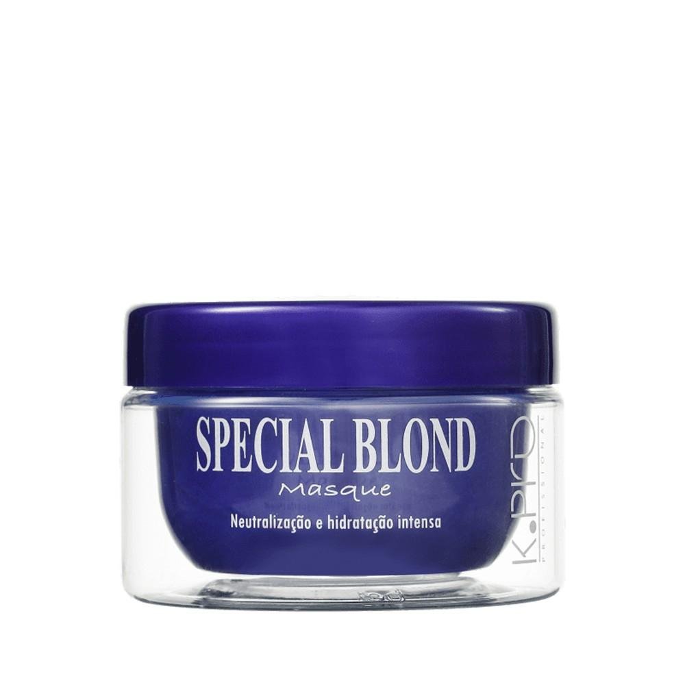 Máscara hidratante K.Pro special blond matizadora Special Blond Masque. O produto funciona como um potente neutralizante, além de restaurar a força e a elasticidade da camada interna e externa dos fios. Com pH ácido (3.5 a 4.5), micropigmentos de última geração, nanopartículas de queratina seletiva (hidrolisada e quaternizada) em alta concentração e HMA Caribbean Oil (exclusiva tecnologia Hair Micro Adesive) é indicada também para grisalhos e loiros naturais com desbotamento precoce.