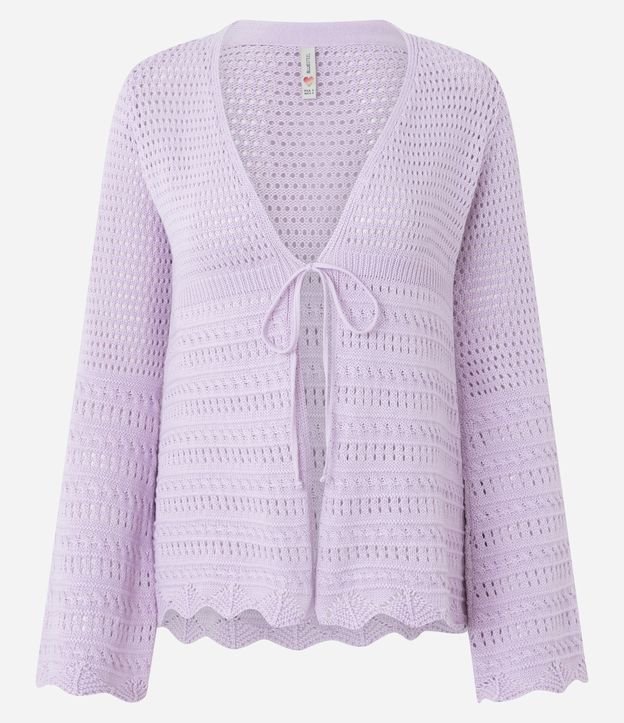 Kimono em Tricô com Mix de Pontos e Amarração Roxo