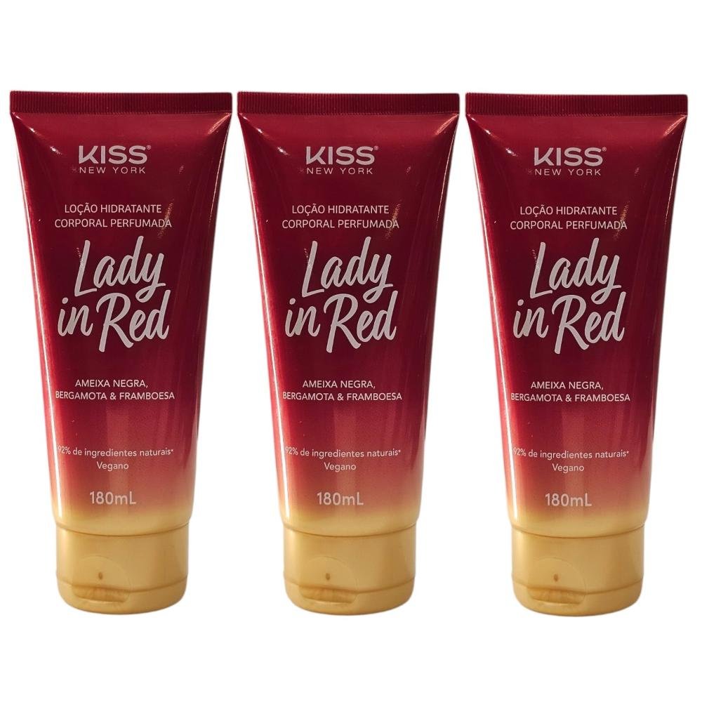Kiss New York Lady in Red - Loção Hidratante Corporal 180ml - 3 Unidades ÚNICO