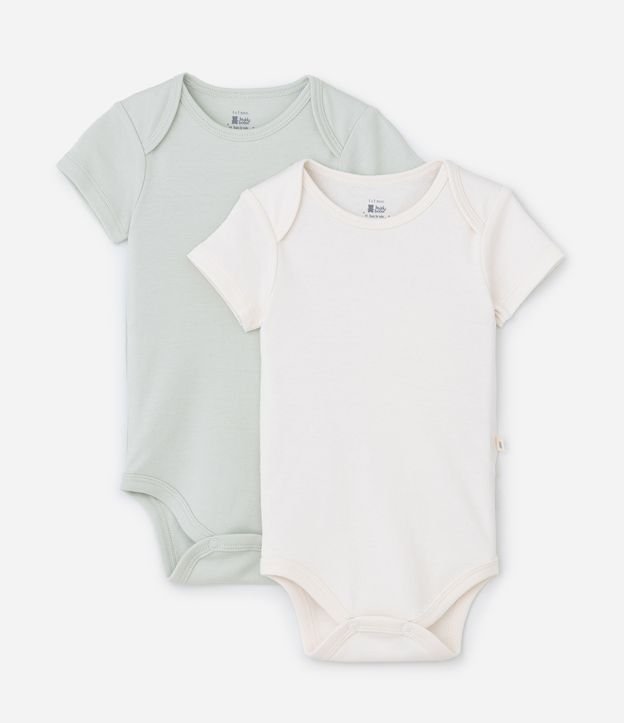 Kit com 02 bodies infantis confeccionado em suedine algodão mais sustentável, gola americana, manga curta, fechamento no entrepernas, básicos sem estampa.