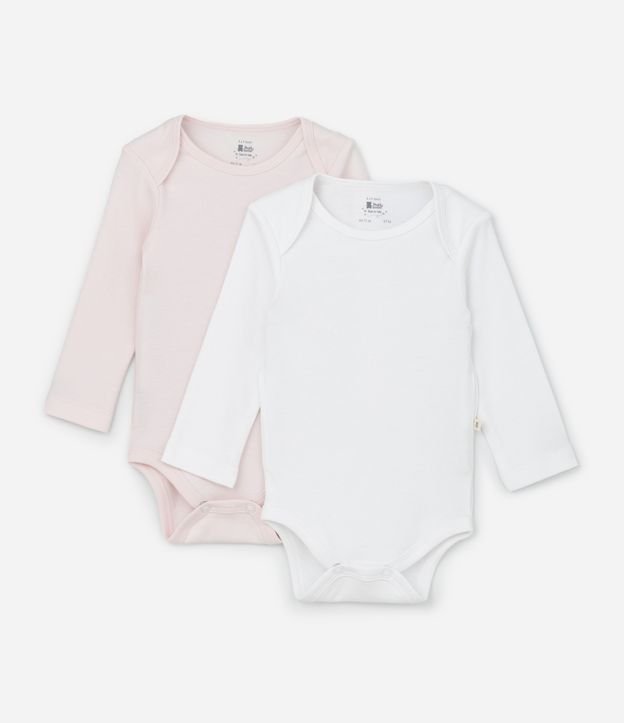 Kit com 02 bodies infantis confeccionado em suedine mais sustentável, gola americana, manga longa, fechamento no entrepernas, básicos sem estampa.