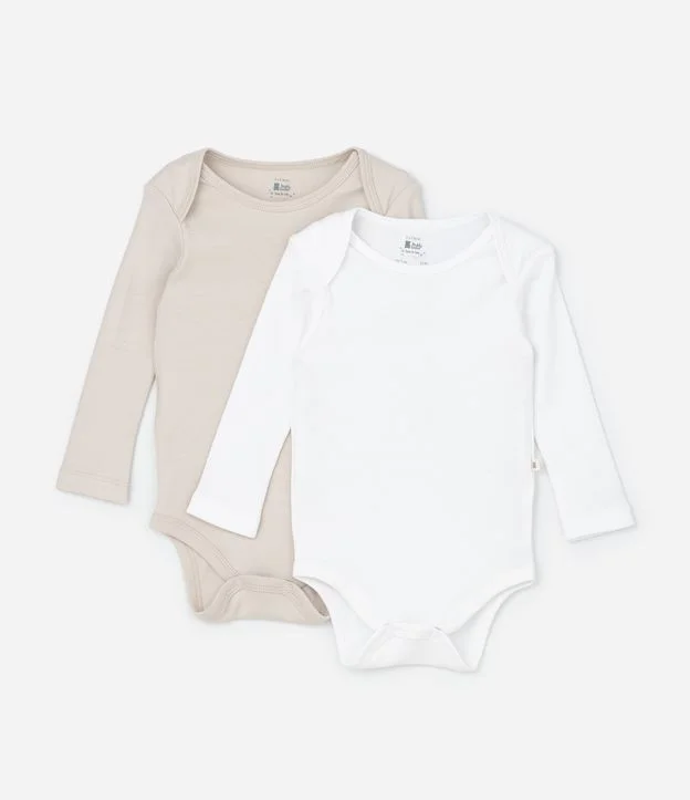 Kit 02 Bodies Infantis em Suedine com Manga Longa - Tam RN a 24 meses Bege/Branco