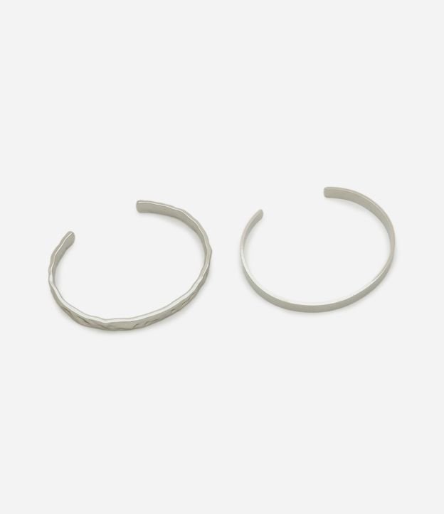 Kit 02 Braceletes Metalizados com Textura Prata