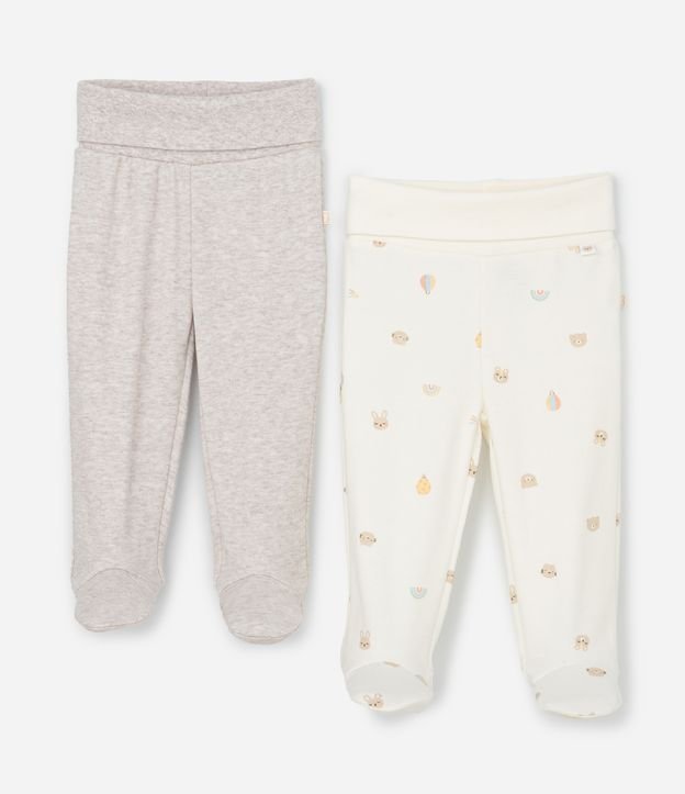 Kit 02 Calças Infantil em Suedine com Pés – Tam RN a 12 Meses Off White/Cinza