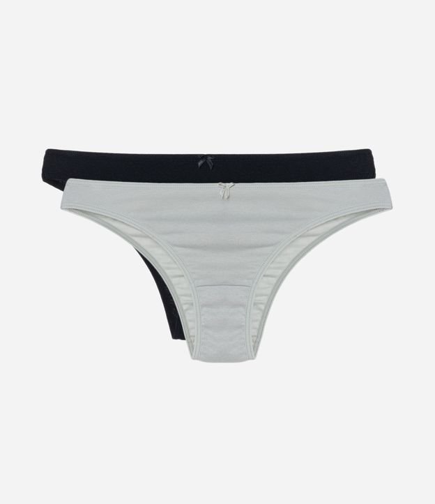 Kit 02 Calcinhas Biquíni em Algodão com Lacinho Cinza/Preto