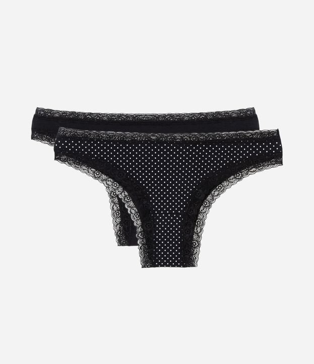 Kit 02 Calcinhas Biquíni em Cotton com Detalhe de Renda Preto