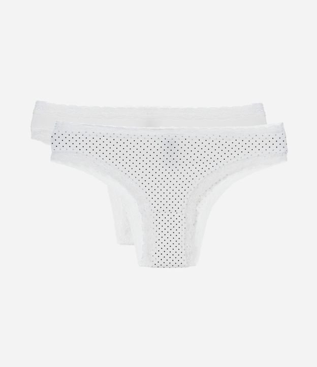 Kit 02 Calcinhas Biquíni em Cotton com Detalhe de Renda Branco