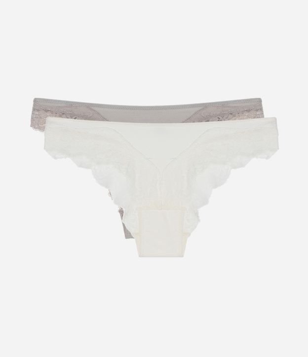 Kit 02 Calcinhas Biquíni em Microfibra com Renda Off White/Bege/Preto